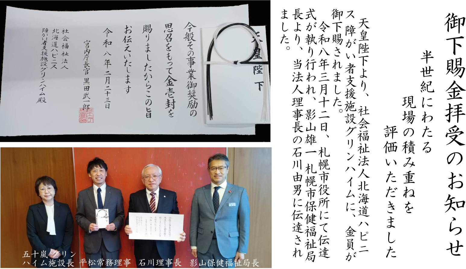 | このたびの御下賜金拝受につきまして、詳細はこちらをクリック |